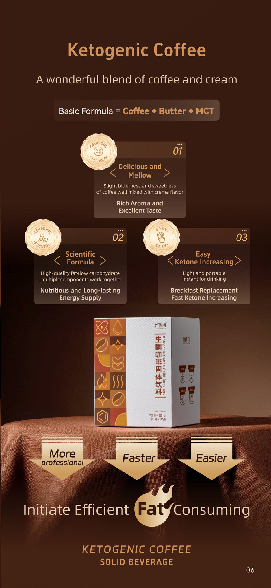 Ingredients: Powder Butter (Butter, Isomaltooligosaccharide, Sodium Caseinate, Mono-and diglycerides of fatty acids, Sodium Ascorbate), Cream Powder (Cow's milk), Instant Coffee Powder (2.25g/stick), Medium Chain Triglycerides Powder, Resistant Dextrin, Inulin, Virgin Coconut Oil Powder, Conjugated Linoleic Acid Glycerides Microcapsule Powder, White Kidney Bean Extract, Theanine, Green Coffee Powder (Raw Coffee Powder), Potato Extract, Turmeric, Citrus Powder (Citrus Polyphenols), Steviol Glycoside.